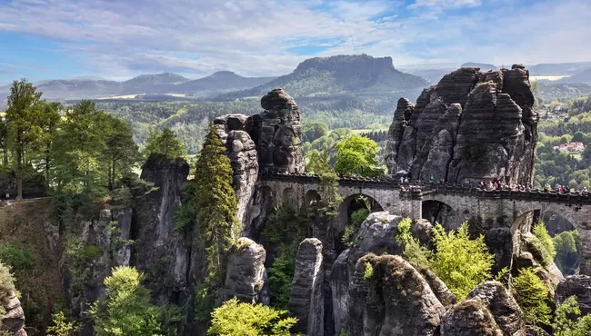Vandaag gaan we op pad naar het hoog boven de Spree-rivier gelegen historische stadje Bautzen, bekend om zijn middeleeuwse skyline en talloze torens. Het hart van de stad wordt gevormd door de historische Altstadt, waar bezienswaardigheden als de Ortenburg, de Sint-Pietersdom en het middeleeuwse waterwerk herinneren aan Bautzens rijke verleden als handelsstad. In de vele kleine cafés proef je de lokale specialiteit: de pittige Bautz’ner mosterd, een icoon in heel Duitsland. Een voormalig Stasi gevangenis is omgevormd tot een gedenk- en documentatiecentrum, waar u kunt leren over het leven van de gevangenen en de geschiedenis van politieke vervolging in Duitsland. Daarnaast is Bautzen het culturele hart van de Sorbische minderheid, een West-Slavisch volk met een eigen taal en levendige tradities. Sorbische opschriften, musea en feesten geven de stad een unieke, meertalige sfeer. Via een mooie route rijden we naar de 76,5 meter lange Basteibrug, met uitzicht op de beroemdste rotsformatie in Saksisch Zwitserland. Geniet van het prachtige panorama.