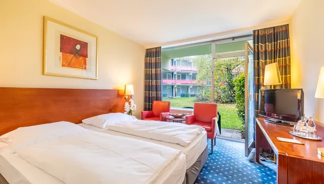 We verblijven in hotel Plaza Inn Goslar gelegen op een rustige locatie en op 20 minuten lopen van het historische centrum van Goslar. Het hotel beschikt over een restaurant met terras, een gezellige bar, een binnen zwembad, een rustige binnenplaats en lift. WiFi is gratis beschikbaar in het hele hotel. Alle kamers zijn uitgerust met twee éénpersoonsbedden, een bureau, een zithoek en een eigen badkamer met douche.