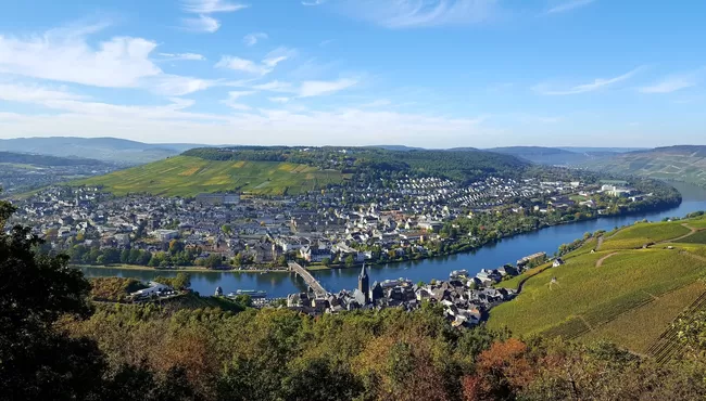 Om een goede indruk te krijgen van Bernkastel-Kues, een stadje met vakwerkhuizen, smalle en steile straatjes, nemen we het toeristentreintje dat door de stad rijdt. Onderweg passeren we het middeleeuwse marktplein, de St. Michaels kerk, het wijnmuseum en de wijngaarden. ’s Middags gaan we via een mooie route weer richting ons hotel.  We maken onderweg een kleine tussenstop in het plaatsje Traben-Trarbach, gelegen aan een smalle bocht in de Moezel. Het kenmerk van de stad is de Brückentor, een poortgebouw bij de brug over de Moezel.