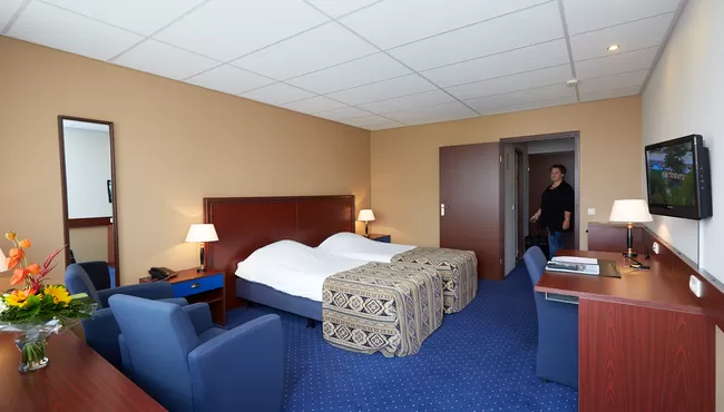 We verblijven in het 4-sterren Hotel Zwartewater, gelegen aan het water en de rand van het centrum. ’s Morgens een uitgebreid ontbijtbuffet en ’s avonds live cooking dinerbuffet in hotel restaurant de Combuijs. De kamers zijn voorzien van een douche en toilet, föhn, 2 enkele boxspring bedden, tv, radio, bureau/schrijftafel en gratis WIFI. Het hotel heeft twee restaurants, buitenterras, gezellige serre, bar en zaal, lift en tegen betaling: bowlingbaan. Beoordeling Booking.com 8.2.