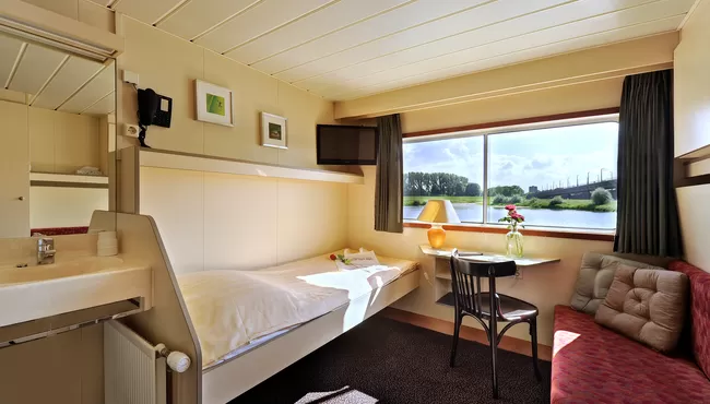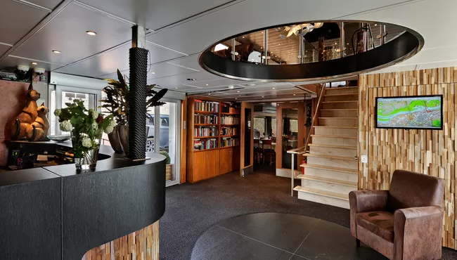 De bar en de dansvloer in de lounge zijn prima plekken voor een avond gezelligheid. Wilt u liever ontspannen? Neem dan eens plaats in een massagestoel. Vanuit de lounge kunt u zo de stuurhut binnenlopen. Hier staan banken vanwaar u op uw gemak de handelingen van de kapitein of de stuurman kunt volgen. Of u gaat eens het zonnedek op. Onder de overkapping en elders op het zonnedek staan diverse zitjes en ligbedden. Het ruime restaurant bevindt zich een dek lager en heeft natuurlijk grote ramen. Voorin het schip op het hoofddek vindt u een ontspanningsruimte met grote whirlpool, sauna, fitnessapparatuur, toilet en een grote doucheruimte.