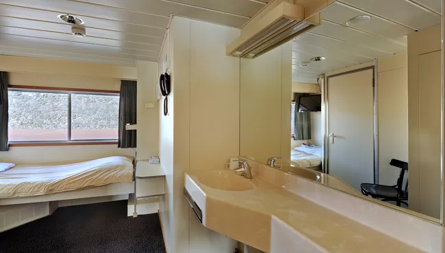 In alle hutten zijn volop faciliteiten, zoals een douche en toilet, aparte wastafel, föhn, televisie, een kluisje, bergruimte, regelbare airconditioning en twee aparte bedden, waarvan er één overdag wordt omgebouwd tot een bankje.