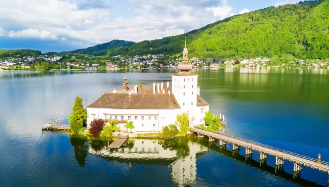Wat maakt de Traunsee zo dromerig mooi? Behalve het kristalheldere water is het zeker ook de schilderachtige omgeving met z’n afwisselende bergpanorama. De grotendeels onbewoonde oostkust met de markante Traunstein, waarvan de steile rotswanden 1200 meter uit het meer oprijzen, is ideaal voor alpinisten. De zuid- en westoever met weilanden, een bebost middengebergte en de pittoreske plaatsjes Ebensee, Traunkirchen en Altmünster. De noordelijke oever, waar de rivier Traun in de Traunsee stroomt, wordt gedomineerd door het historische stadje Gmunden. Het heeft een oude kern met soms smalle straatjes waaraan schilderachtige panden staan. Met o.a. het bijzondere gemeentehuis in pasteltinten, kleine torentjes en rijk gedecoreerde gevel en fraaie oude stadspoort. Iets verder vinden we het waterslot Ort, het kasteel bestaat uit 2 delen, waarvan één deel op een eilandje ligt in de Traunsee. Langs de oever loopt een lange boulevard naar Schloss Ort, een geliefd wandelgebied voor inwoners van Gmunden en toeristen.