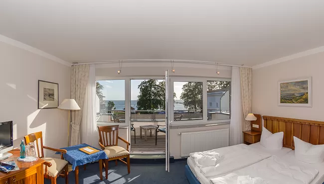 We verblijven in het schitterende 4-sterren hotel Badehaus Goor in Lauterbach. De voorzijde van het gebouw bestaat uit een prachtige en statige zuilengalerij dat Prins Wilhelm Malte van Putbus in 1818 liet bouwen voor zichzelf en de adel, het diende als badhuis. Achter de zuilengalerij vinden we een prachtig 4-sterren hotel. Het hotel ligt aan de baai. U kunt een heerlijke wandeling maken naar de haven of langs de beboste kustlijn. Het hotel is voorzien van een lift, een binnenzwembad, een spa, bar met een lounge en een heerlijk terras dat uitkijkt op de baai. De ruime kamers zijn van alle gemakken voorzien, zoals u kunt verwachten van een 4-sterren hotel. In het restaurant krijgen we een uitgebreid ontbijt en in de avond een heerlijk drie-gangen-diner. Beoordeling Booking.com: 8.5.